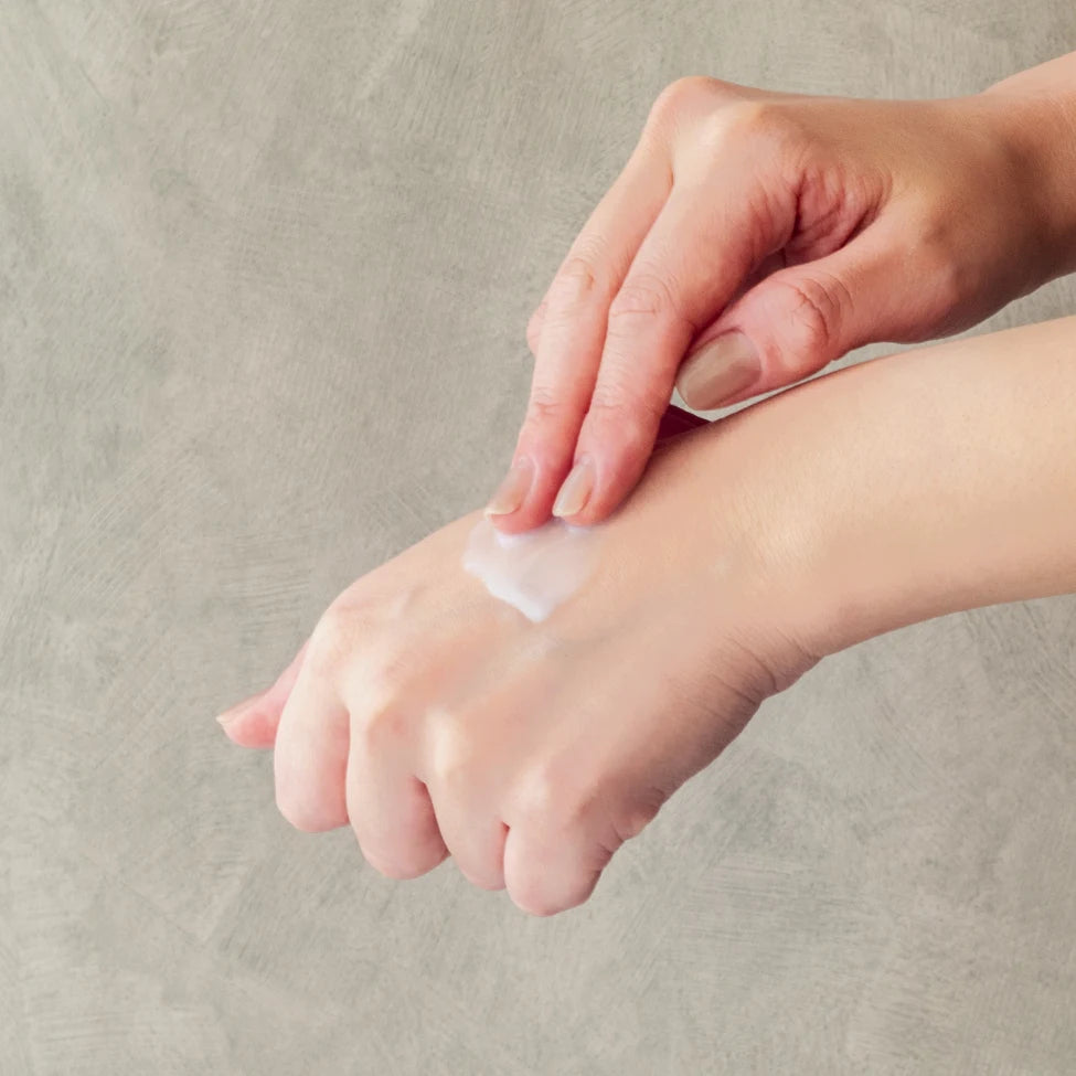 朝と晩、化粧水で肌を整えた後、手のひらに2回押し分をとり、顔全体にやさしくなじませてください。